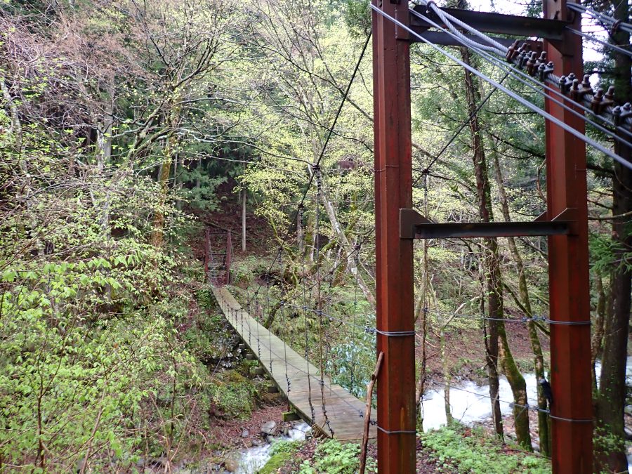 登山口からすぐにつり橋があります。